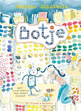 Botje speelt zich voor een groot deel af in een wolwinkel. Nou denk je misschien: een wolwinkel, hoe kom je daar nou bij? Dat zit zo: ik het dorp waar ik woon is een wolwinkeltje. Ik kan zelf helemaal niet breien, maar ik vind het winkeltje zo mooi om te zien: al die muren vol met kleuren. Om over een wolwinkel te schrijven hoef je niet te kunnen breien, dus kon ik het winkeltje gerust als decor voor mijn boek gebruiken. En nou komt het leuke: toen Botje er was heeft de eigenaresse van de winkel een echte Botje gebreid. Net zoals de vader van Bibi in het boek.